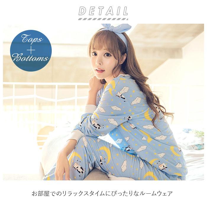 ルームウェア 可愛い 長袖 通販 レディース セット 上下セット かわいい パジャマ 春夏 秋冬 ゆったり おしゃれ M L Xl 2xl アニマル 牛 フィッシュ 魚 Backyard Family 通販 Paypayモール